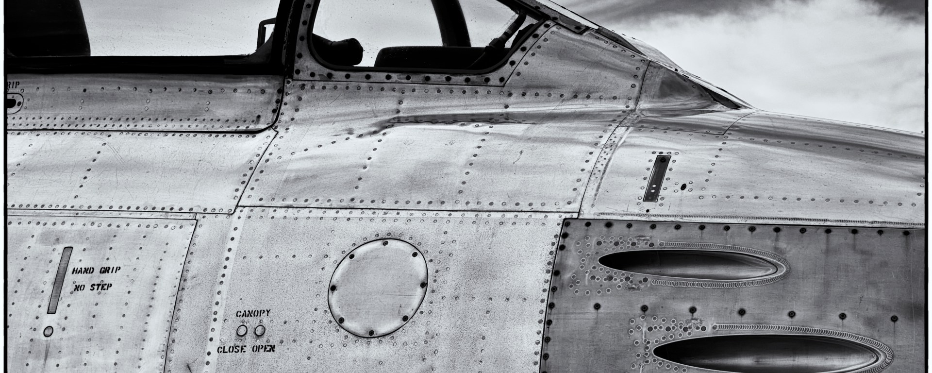 Old F-86 Sabre jet on static display at Wittman Field in Oshkosh, WI during EAA’s AirVenture 2013, 23 July 2013.